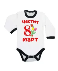 Бебешко боди Честит 8Ми март МАМО всички много те обичаме + БУКЕТ
